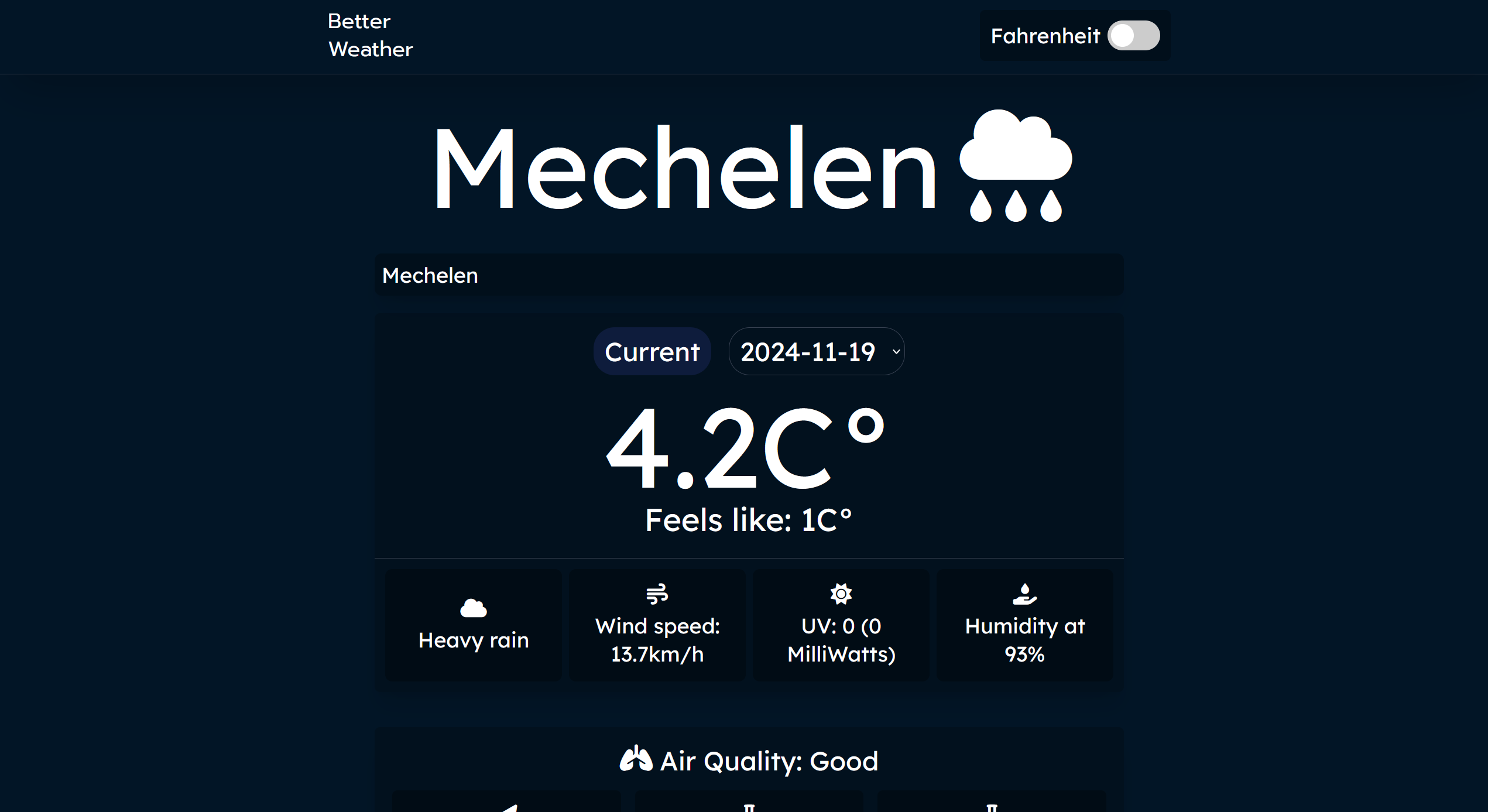 A weather webapp full with features. Up to 3 days forecast and air quality. Made with Svelte 5 and Tailwind CSS